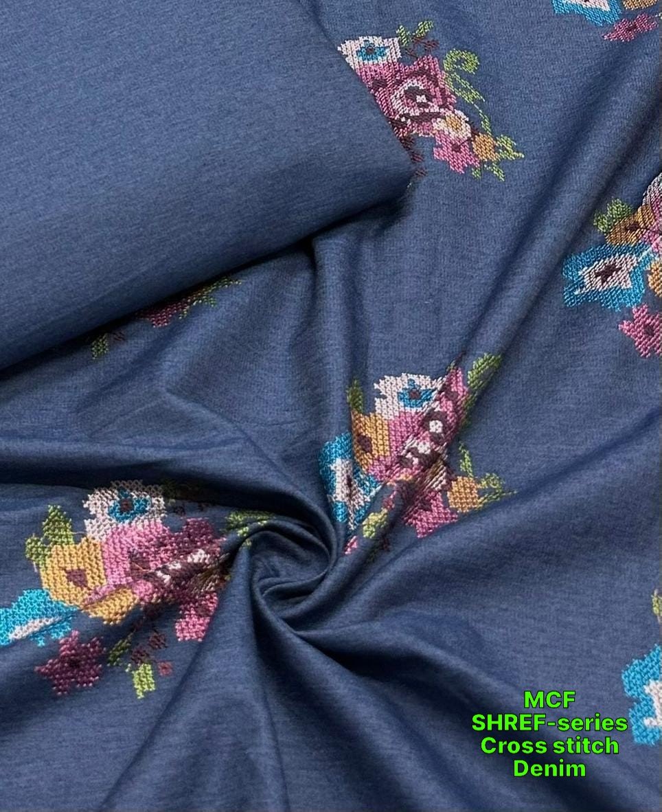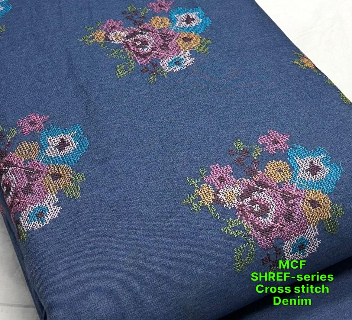 Be the first to review “Cross Stitch Floral Denim Fabric For Dresses, Tops & Couture”