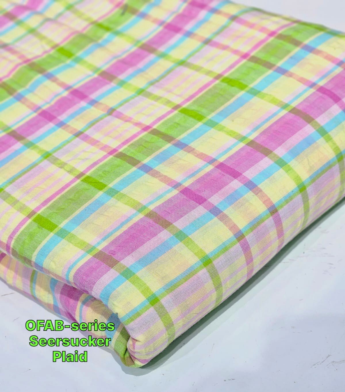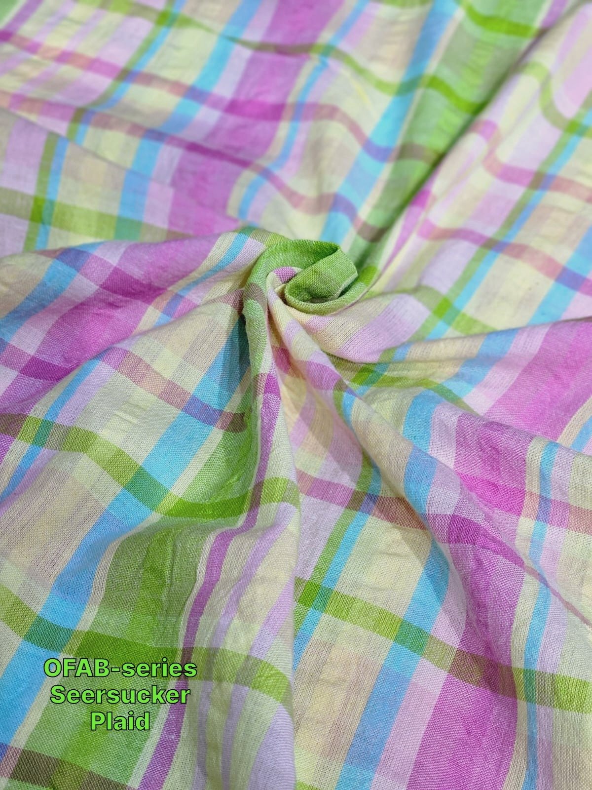Bright Seersucker Plaid Fabric For Dresses & Shirts